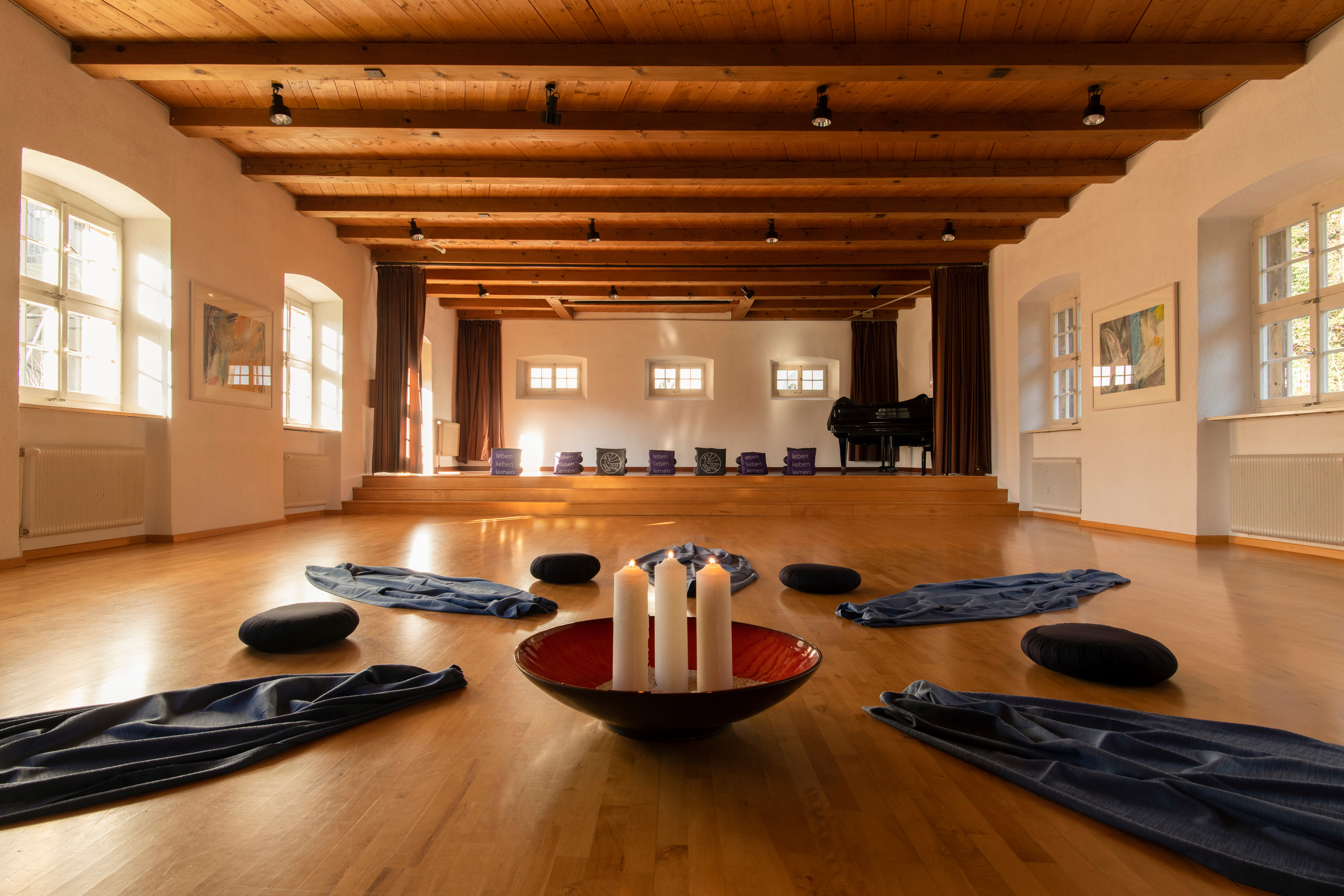 Kerzen sind in den Seminarräumen nicht erlaubt. Unsere Kapelle steht Ihnen für Meditationseinheiten oder Gebete mit Kerzen zur Verfügung.